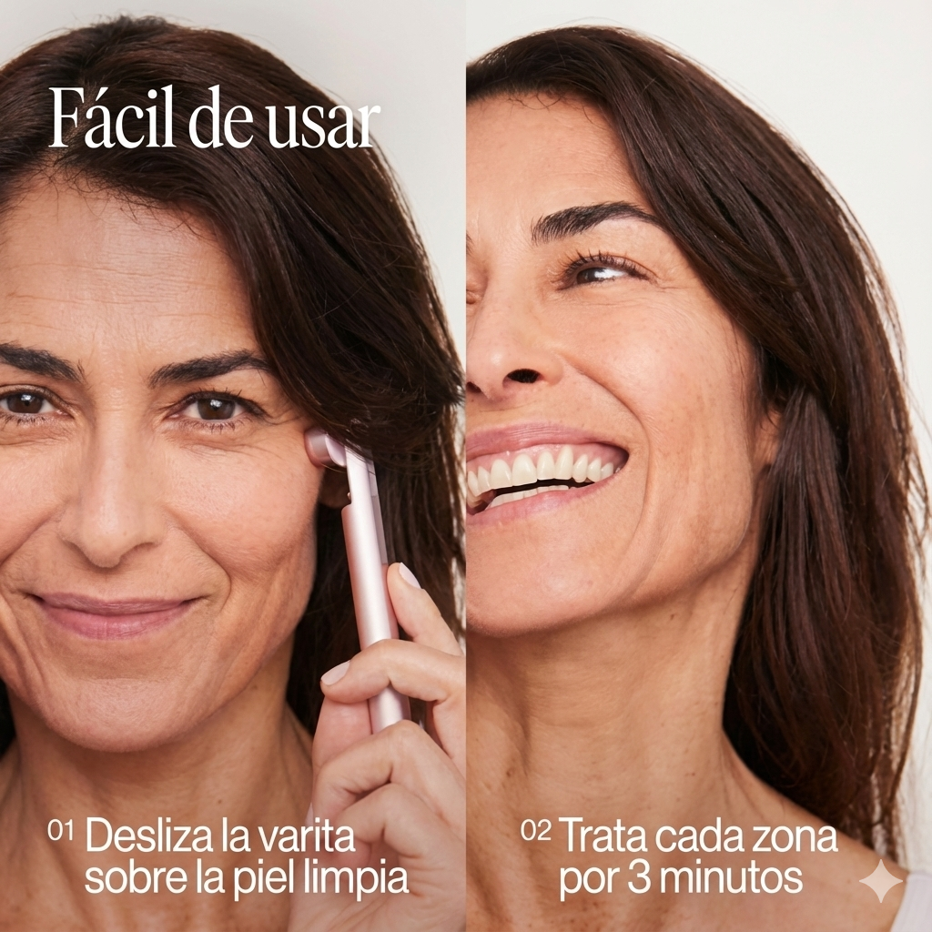 - Terapia de Luz Roja (630nm): Mejora visiblemente la firmeza y suaviza la apariencia de líneas finas y arrugas con el uso continuado.
