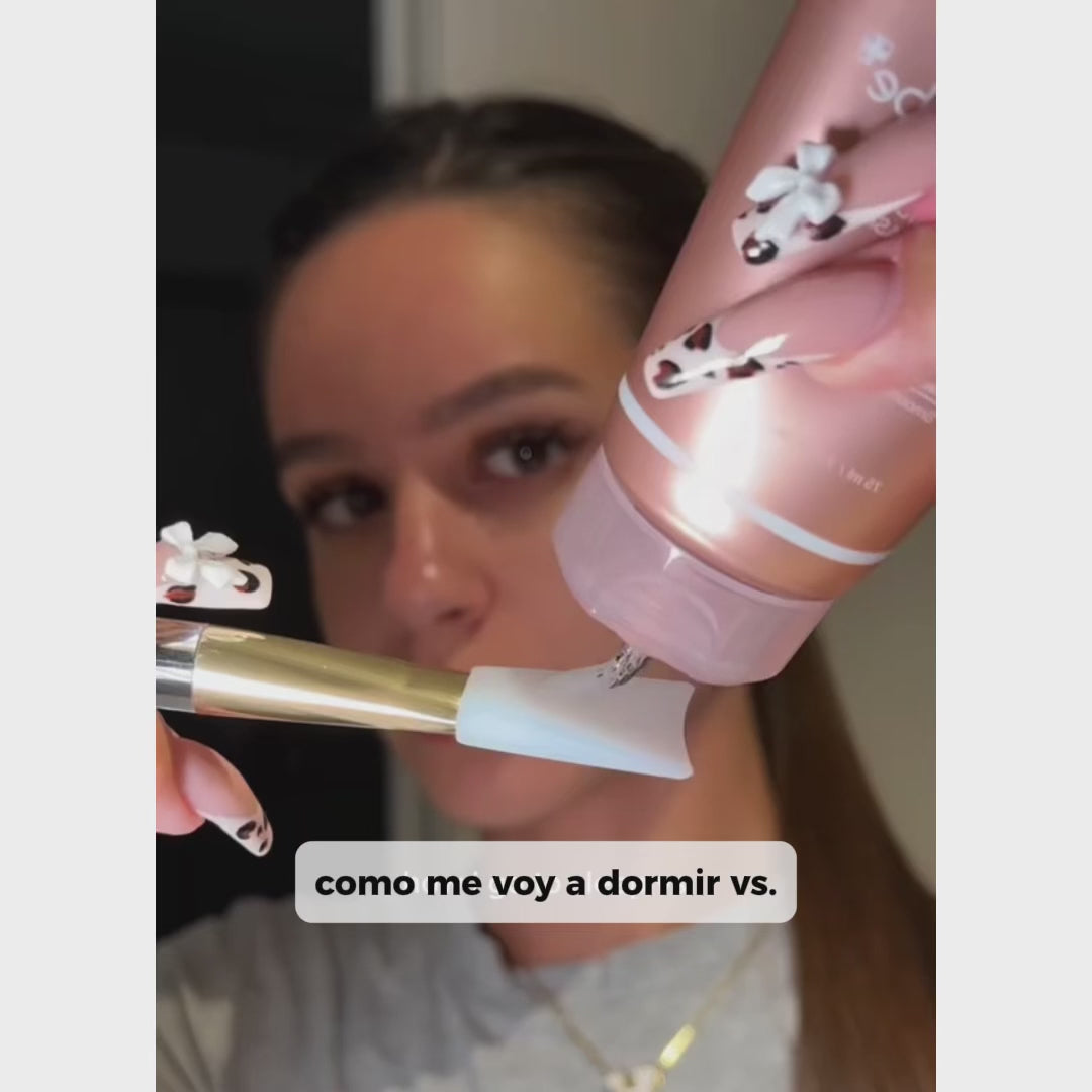 A la mañana siguiente, retira suavemente la mascarilla despegándola por los bordes para revelar una piel radiante y bien hidratada.